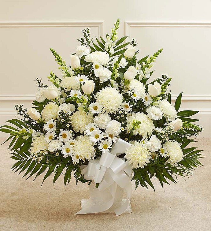 11:02 AM Heartfelt Tribute Floor Basket Arrangement - White Beautiful Flowers Send a beautiful expression of your love and concern at this difficult time.Read More